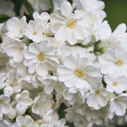 Главная ценность сорта — уникальные цветки, сочетающие изящество и необычную структуру. Диаметр каждого — 2,5–3 см, окраска чисто-белая, а количество лепестков может варьироваться от 4 до 25. Лепестки плотные, восковые, слегка приподнятые по краям, что придаёт соцветиям эффект объёмных кружев. Бутоны окрашены в белый с едва заметным зеленоватым или розоватым тоном, особенно в лёгкой полутени. Соцветия плотные, прямостоячие, конической формы, длиной около 20 см, формируют на кусте эффектные вертикальные акценты.