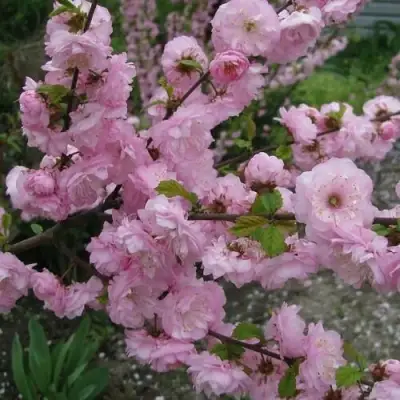 Миндаль трехлопастный это не просто растение, а настоящее произведение искусства от природы. Цветение начинается в начале мая, когда пробуждается природа и расцветает жизнь вокруг. Особенность этого вида заключается в том, что в этот период куст покрывается множеством нежных розовых цветков, которые собираются в изящные пары. Они распускаются на мягких побегах, создавая великолепное зрелище, которое невозможно не восхищаться. Цветы настолько насыщены оттенками и формами, что напоминают миниатюрные розочки — этот невесомый цветочный ковер подчеркнёт красоту вашего сада.