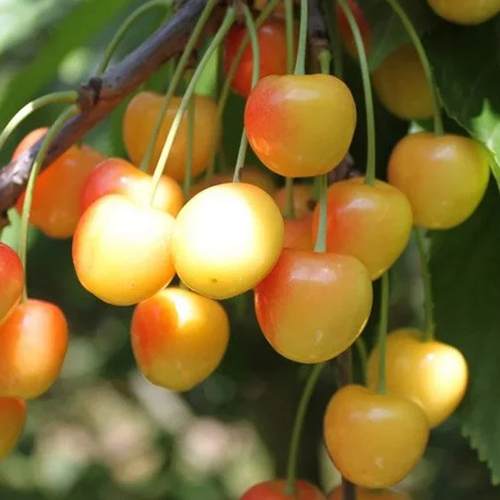 Мякоть черешни «Янтарная» нежная, светло-желтая, с высоким содержанием сока, который остается бесцветным. Вкус сладкий и сочный, что навсегда завоюет ваше сердце и порадует ваших близких. Срок потребления плодов – с конца июня до начала июля, что позволяет наслаждаться свежими фруктами в разгар лета.