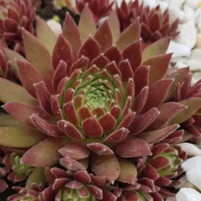 Высота взрослого растения — до 8 см, ширина колонии может достигать 10 см. Благодаря компактным размерам и контрастной окраске, молодило Люфтшпрунг отлично сочетается с другими сортами каменных роз, седумов и почвопокровных растений. Это не просто суккулент, а яркий цветовой акцент, способный подчеркнуть текстуру камня, гравия или декоративной мульчи.