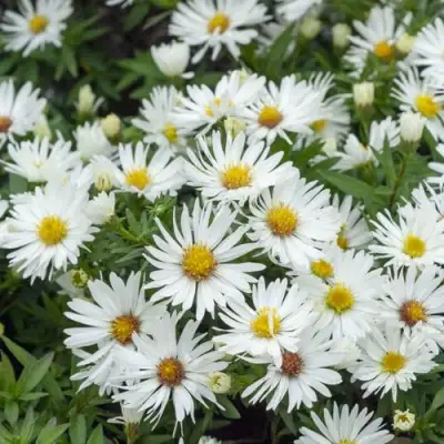 Астра кустарниковая Kristina - многолетнее травянистое растение с ветвистыми стеблями, образует полушаровидные кустики. Высотой 30-40 см. Цветение: белые цветки, продолжительное обильное цветение с сентября по ноябрь. Местоположение: Солнце-полутень. Почвы: Любит плодородную, хорошо дренированную увлажненную почву.