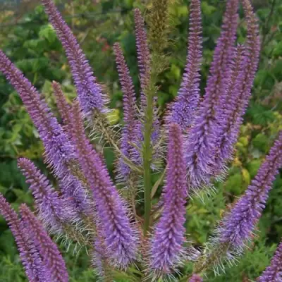 Листья тёмно-зелёные, узкие, собраны в мутовки. Такое расположение подчёркивает графичность и придаёт растению скульптурность даже вне периода цветения. Цветение начинается в июле и продолжается до конца августа. Соцветия длиной до 20–30 см, густые, прямостоячие, лилово-розового оттенка. Цветки мелкие, но многочисленные, распускаются постепенно, создавая эффект «живой волны». Аромат отсутствует — можно смело размещать рядом с пряными или душистыми культурами.