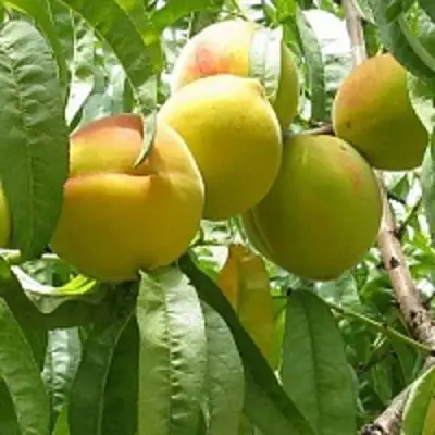 Плоды саженца имеют округло-овальную форма с яркой, солнечной окраской: желто-оранжевые с характерными буровато-оранжевыми размытыми румянцами на солнечной стороне. Средний вес плодов варьируется от 110 до 120 г, и в особо благоприятные годы может достигать до 180 г. Опушение плодов густое и войлочное, придавая им еще больше шарма. Мякоть плодов ярко-желтая с оранжевым оттенком и имеет плотную консистенцию, что делает ее особенно привлекательной для любителей фруктов. Вкусовые качества плодов "Сеянеца Старка" порадуют сладким вкусом с легкой кислинкой и насыщенным ароматом, характерным для желтомясых персиков.