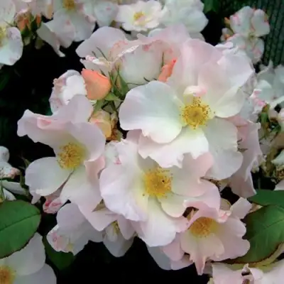 Цветки этой розы имеют простую структуру, состоящую из 4-8 лепестков. Они располагаются в соцветиях, а количество цветков на стебле может достигать 10-30 штук. Аромат этой розы слабый, но приятный.