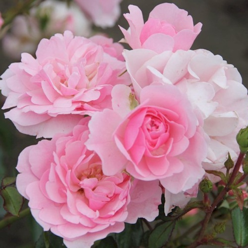 Компактный кустарник высотой до 120 см с округлой широкой кроной формирует плотные соцветия из 10–20 аккуратных розовых бутонов. Цветки среднего размера (6–8 см), махровые, с нежным розовым оттенком, который на солнце светлеет до почти кремового. Аромат мягкий, еле уловимый — не перебивает другие ароматы в саду, но даёт тонкий флёр.