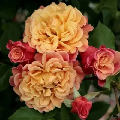 Окраска бутона этой розы представлена красно-оранжевым цветом, в то время как цветок сам по себе имеет абрикосово-розовую окраску, иногда с оттенками красного. Основная окраска цветка - оранжевая, а насыщенность цвета - яркая. Форма бутона бокаловидная, а форма цветка - чашевидная, с высоким центром.