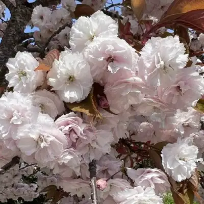Наиболее впечатляющая особенность сакуры Широфуген – это, конечно же, ее цветение. В конце мая маленькие розовые почки раскрываются, представляя белоснежные, махровые цветки диаметром 4-5 см. Эти чудеса природы появляются в длинных рыхлых кистях, которые свисают вниз, создавая волшебную атмосферу в вашем саду. По мере отцветания цветки приобретают нежный пурпурно-розовый оттенок, удивляя своей красотой и необычностью. Такое цветение обязательно привлечет взгляды и станет настоящей изюминкой любого сада.